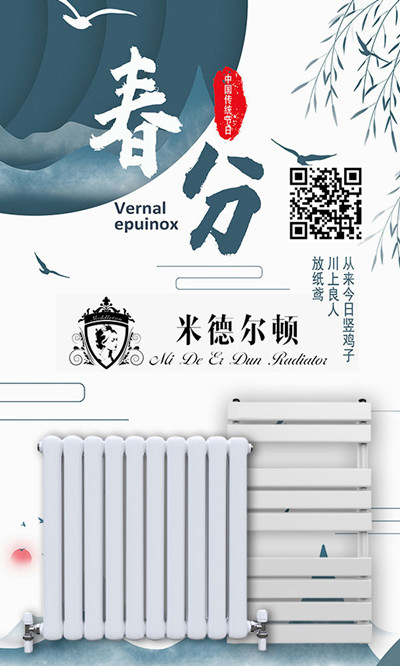 今天,我們進入春分時節(jié)了,春分風,夏至雨,春分有雨是豐年,春分到,燕子回,晝夜正平分,春分麥起身,,一刻值千金,春分不暖,秋分不寒.但目前東北華北地區(qū)也仍處于氣象意義上的冬季,冷暖氣團仍舊交替頻繁,冬末春初,每一次冷暖空氣的波動都在推動春天的腳步。你是不是也覺得生活已經(jīng)離不開暖氣了?驕傲的說著“我家還有暖氣”呢!天津銅鋁復合暖氣片廠家作為家中比較常用的且需要長久使用的采暖設備廠家,暖氣片使用年限長,優(yōu)質的暖氣片可以使用二十年、三十年以上,這么多年平均下價格,歸于“買著貴、用著廉價”的產品。